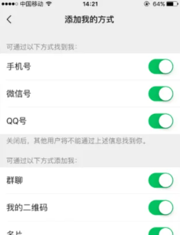 4.然后在隐私界面找到“添加我的方法”选项。选项包括手机号、QQ号等添加好友。
