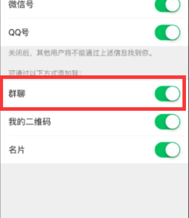 5、最后我们可以找到并关闭群聊方法,这样就不会被别人拖进群了。