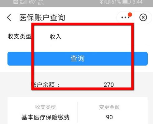 第六步:然后选择收入支出类型,点击“查询”即可查询社保明细。