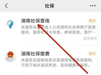 4、在社保列表中选择湖南社保进行查询。