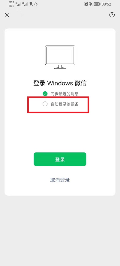 2.然后我们的手机上就会弹出登录界面。我们需要点击下方选择【自动登录此设备】。点击选择,下次就不用再用手机确认了。