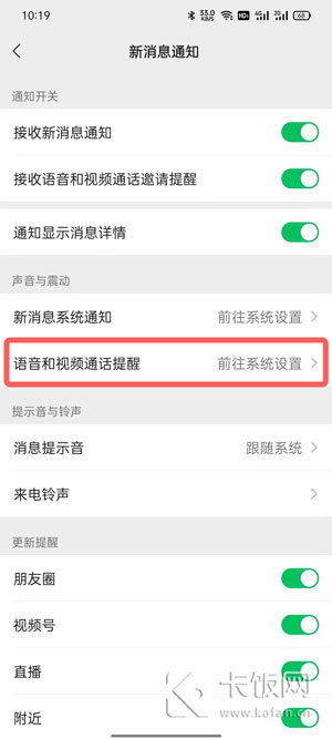 3、进入新消息通知设置后,首先点击【语音和视频来电提醒】设置;
