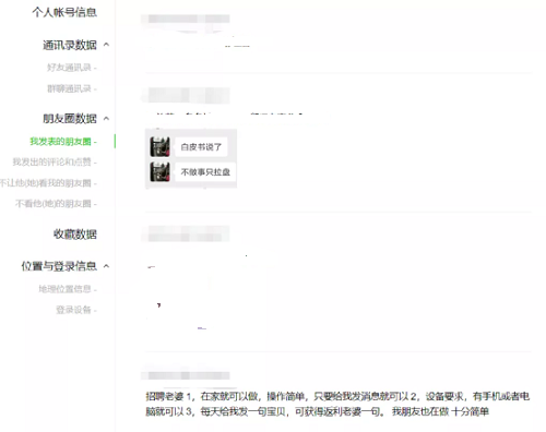 微信此前已经支持导出个人信息的功能。用户可以导出朋友圈、通讯录等内容。