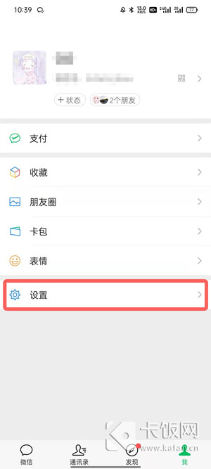 1.打开手机上的微信客户端,点击【我的】界面中的【设置】;