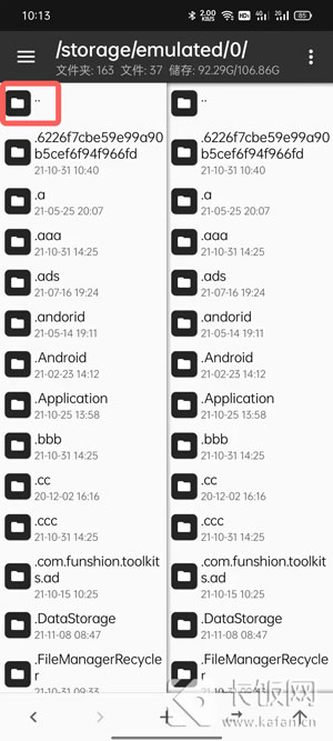 1、以MT Manager应用为例,在手机上打开MT Manager,点击任一测试的管理界面,然后点击上面的【.】返回上一级,直到上面显示的目录为“/”;