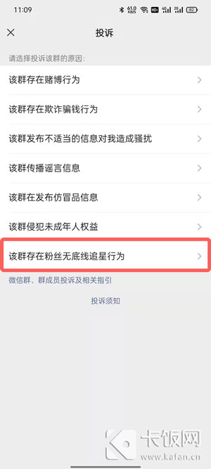 4、投诉类别中选择【该群体存在粉丝无底线追星行为】选项;