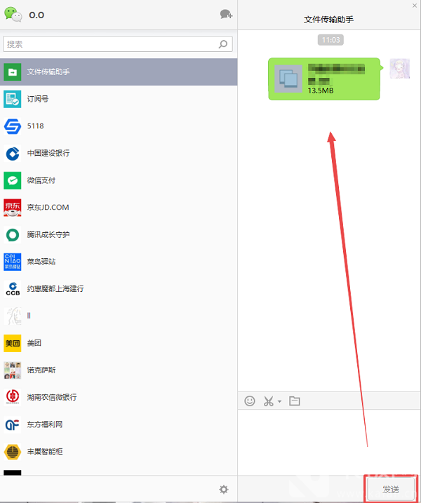 5、或者直接将文件从电脑桌面或文件夹拖拽到聊天窗口,点击【发送】。