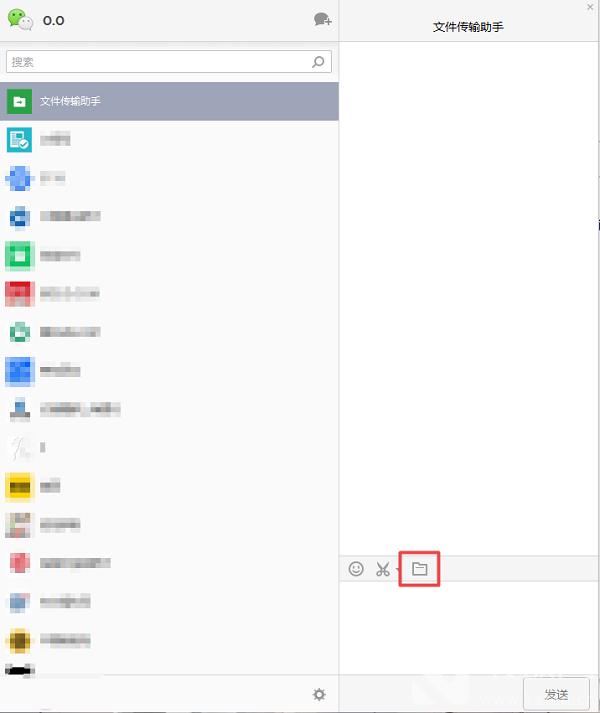 4、登录成功后,在左侧微信好友列表中,找到需要共享文件的好友,打开聊天窗口,选择【文件】;