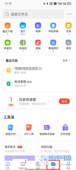 1、打开手机QQ浏览器,点击进入【文件】界面,找到您要发送的文字;