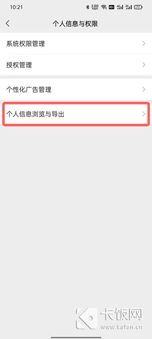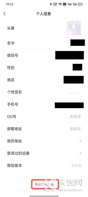 5、在个人信息浏览页面底部,点击【导出个人信息】;