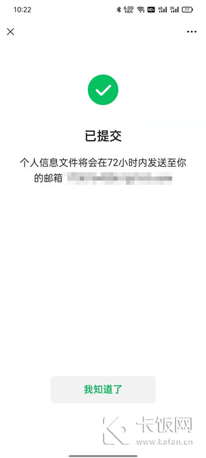 7. 最终的个人信息数据电子邮件将在72小时内收到。点击邮件中的链接即可跳转;