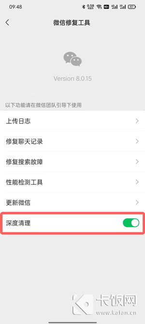 2、在微信修复工具中,开启底部的【深度清理】功能(该功能正在灰度测试中);