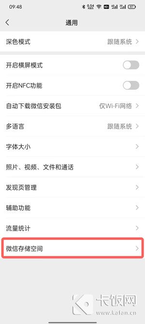 5.点击【微信存储空间】功能,进入微信存储空间管理;