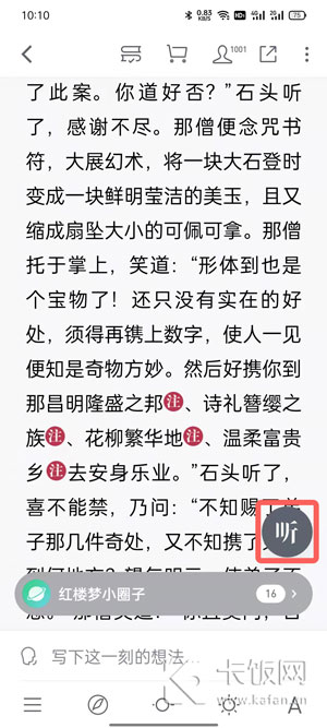 2、然后点击中间区域,弹出菜单,点击右下角的【听】牛;