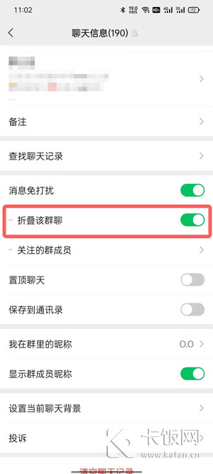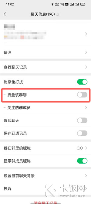 5、当折叠群聊功能右侧按钮变成灰色时,可以取消折叠群聊。