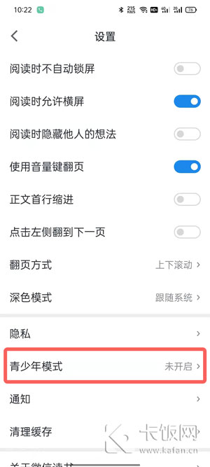 3、点击设置中的【青春模式】进入设置;