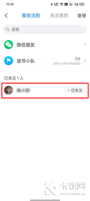 3.在关注列表中选择您要查看阅读记录的好友,点击进入对方主页;