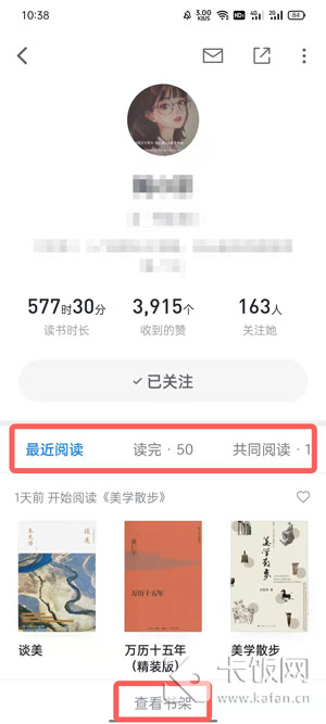 4.【最近】阅读下,可以看到对方正在阅读的书籍,切换到【已完成】和【共同阅读】查看更多记录;