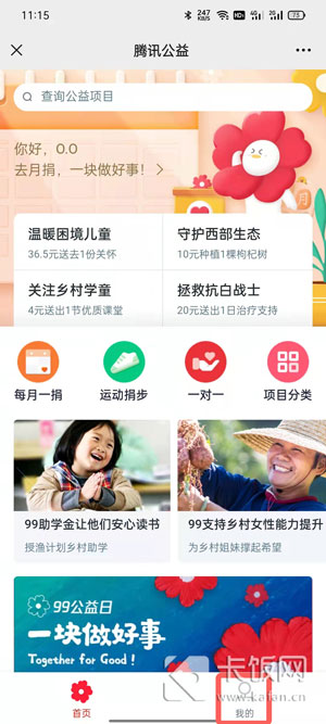 2、然后点击腾讯公益首页右下角【我的】进入;