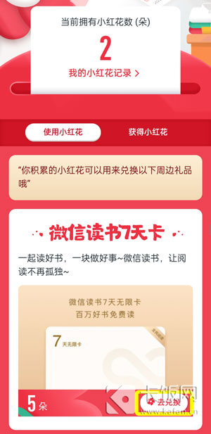 4、在【使用小红花】中选择您喜欢或需要兑换的奖品,点击【兑换】;