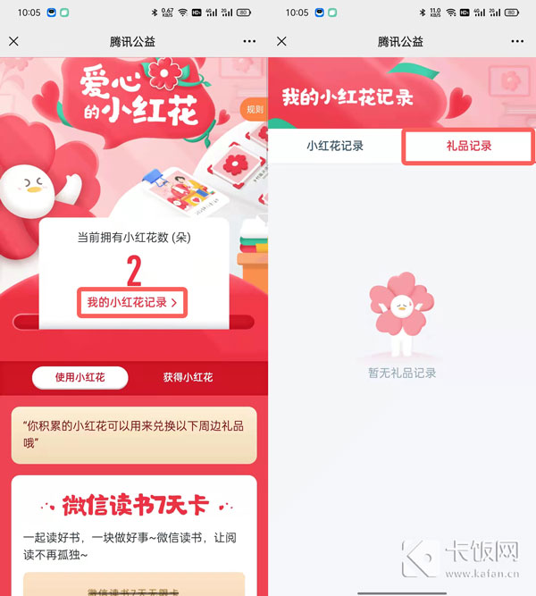 7、兑换完成后,您可以通过【我的小红花记录】-【礼物记录】查看兑换详情,了解虚拟物品的CDKEY以及实体物品的物流情况。