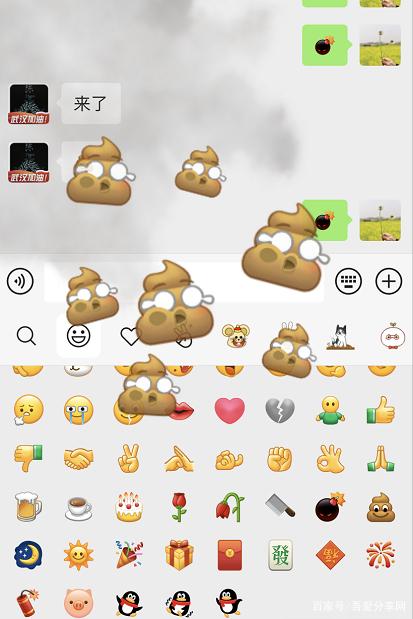 3、需要注意的是,一方发送“拉屎”表情后,另一方接着发送“炸弹”表情。它需要更快,因为它是动态表情符号。这是触发此效果后的样子,屏幕上满是屎。对你来说,看起来有点恶心,但效果还是不错的: