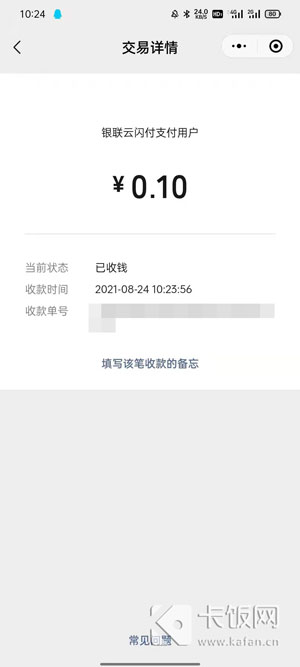 5、支付完成后,商户查看到的支付信息为“银联云闪付支付用户”。