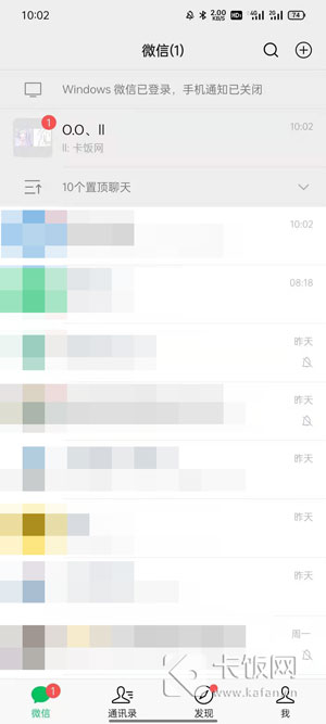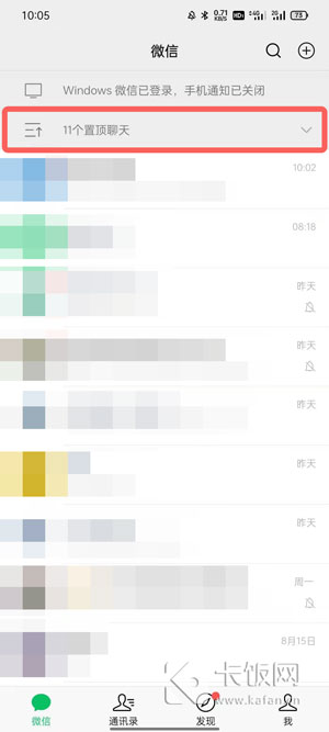 1. 在手机上打开微信,在首页消息页面,确保您的置顶聊天记录大于10条(不含10条)。固定的窗口不仅限于联系人和群聊;