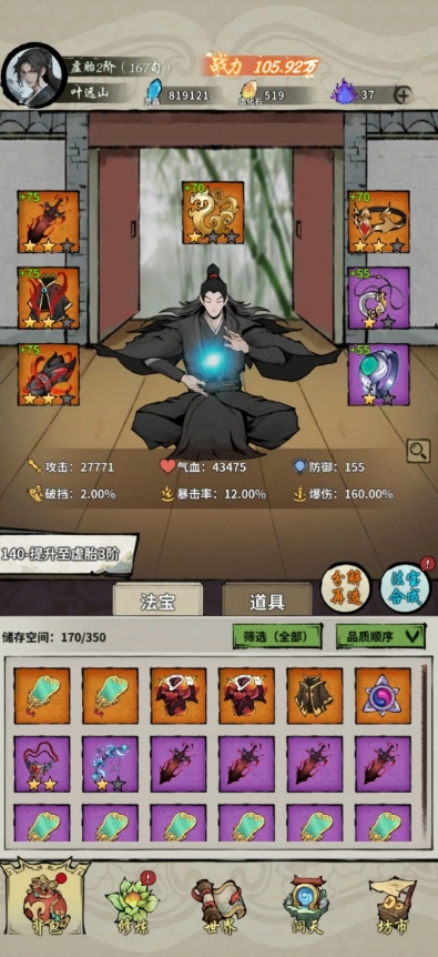 所以排除这些选项,最适合爬塔的技能就是弓箭、铜钱、天火。这三个魔法技能之后,攻击范围远,频率高,伤害依然满屏。再加上风卦的线性伤害。这五个技巧让爬塔变得非常舒服。核心技能是天火、弓箭、风瓜。
