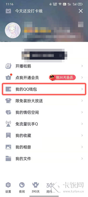 6、在手Q侧边栏菜单中,点击【我的QQ钱包】进入;
