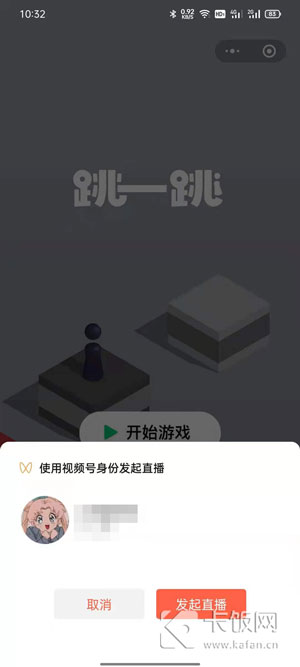 1.打开微信,进入需要直播的小游戏。这里我们以“跳跃”小游戏为例;