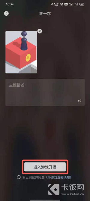 5、输入本次直播主题,勾选【我已阅读.】,点击【进入游戏开始直播】;