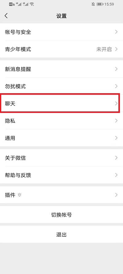 6、在设置界面,我们需要点击【聊天】功能,进入聊天功能界面;