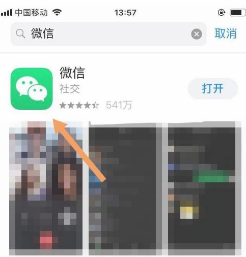 2、在软件商店中,点击上方搜索框,搜索微信,进入微信界面;