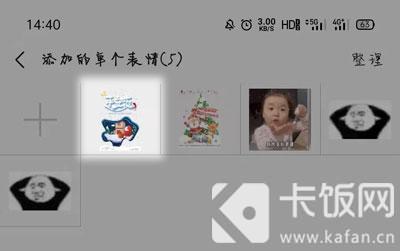 8、在表情选择中,点击我们刚刚添加的素材,然后添加表情按钮就会显示我们选择的素材;