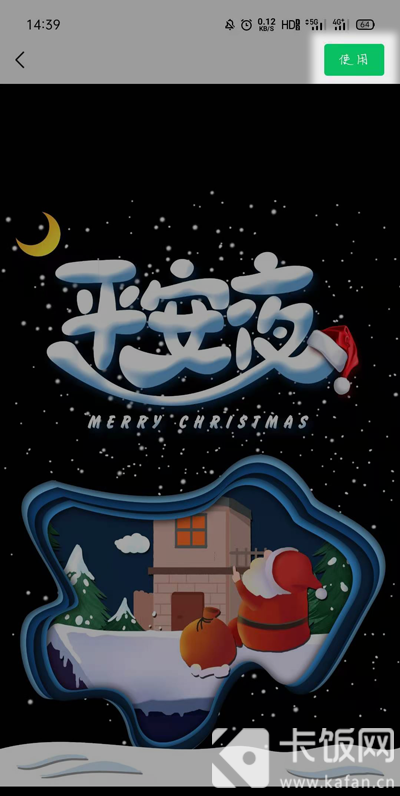 4、然后选择我们刚才保存的微信平安夜红包封面素材,然后点击右上角的【使用】;