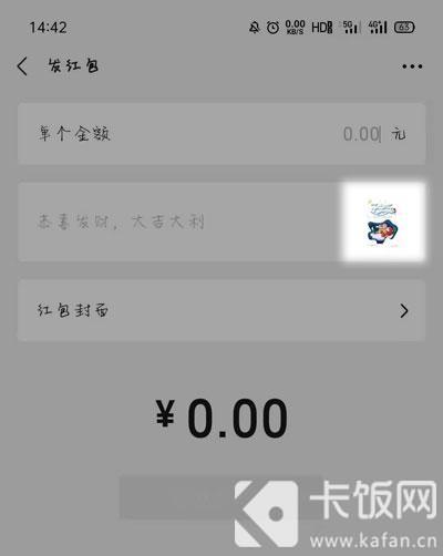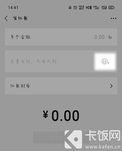 7、进入红包发送页面后,点击祝福输入框右侧的【添加表情】按钮,选择添加喜欢的表情;