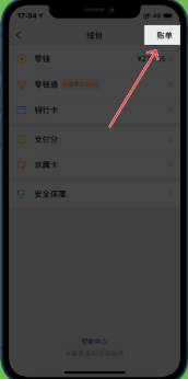 3、在钱包界面,我们需要点击右上角的【账单】选择,点击进入账单;