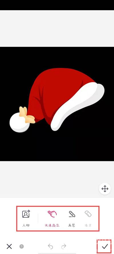 4、使用下方功能快速选择圣诞帽的部分,点击右上角【】确认;