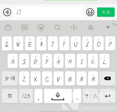 2、然后,点击聊天页面下方的输入框,激活手机键盘,找到中文符号下方的“[]”符号(也可以复制该符号使用);