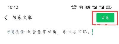 4、如果稍后想继续输入文字,可以使用空格将主题标签与朋友圈文案分开,也可以换行分隔(主题标签为蓝色字体);