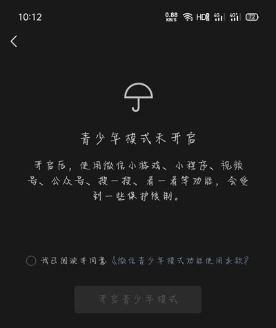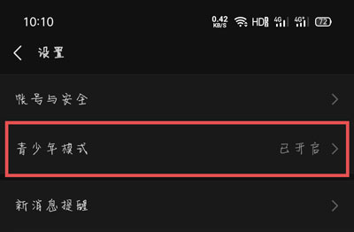 3、然后在微信设置中,选择【青春模式】,也可以看到青春模式已开启;