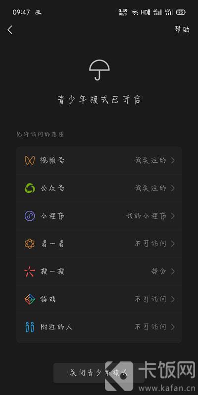 7、验证成功后,即可开启青少年模式,然后设置允许访问范围;