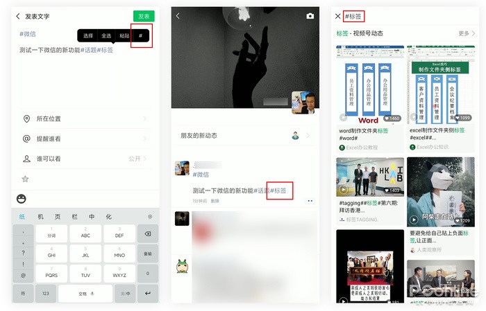 话题标签在微信朋友圈正式上线。很多朋友对这个功能期待已久。使用方法很简单。编辑朋友圈时,按住空白处不放即可。然后快捷菜单将显示一个主题标签图标(#)。添加的标签也会自动变成蓝色,当其他人点击时,会显示视频账号中的相关内容。