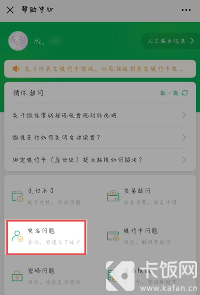 5、进入帮助中心后,找到【实名提问】点击进入;