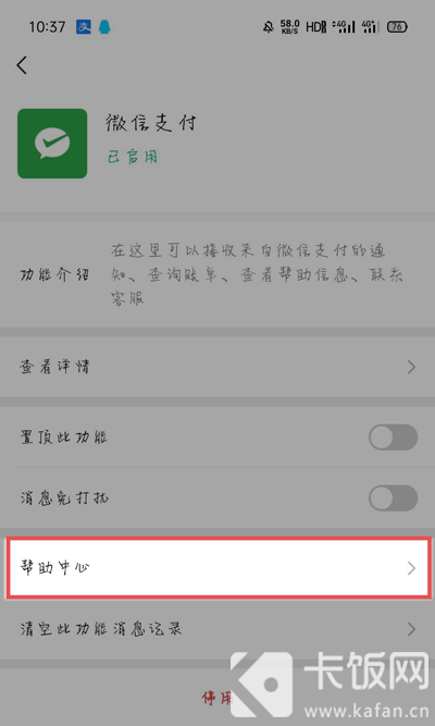 4、在微信支付设置页面,点击【帮助中心】进行下一步;
