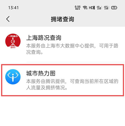 4.最后选择您要查看的拥堵类型为【城市热力图】;