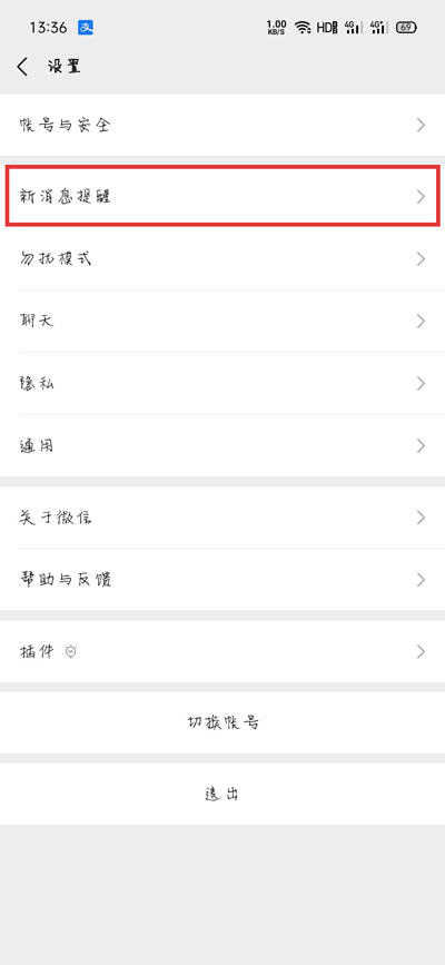 2.然后选择【新消息提醒】设置;