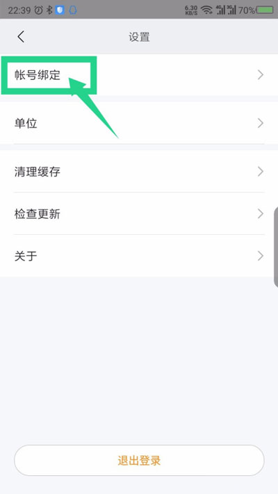 3、然后点击设置中第一个【账户绑定】设置,进入绑定其他账户;