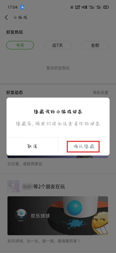 7.【确认隐藏】隐藏自己的微信小游戏更新;